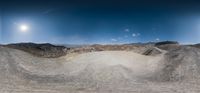there is an image of an aerial panoramic view in the desert area of a mountain