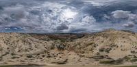 some big rocks under cloudy skies and clouds with a person on a bicycle walking along it