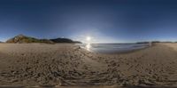 Aerial perspective of Portugal's coastline showcasing open beaches and clear skies. The sun shines brightly over sand and ocean, reflecting Europe's coastal charm. A quintessential sunny day on the Portuguese coast.