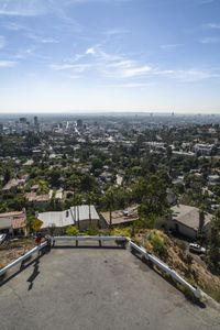 This aerial photograph captures the modern architecture and urban design of Los Angeles, California. The clear sky contrasts with the cityscape, dominated by skyscrapers and residential areas. From this top-down perspective, we see the elevated roads and bridges that connect different parts of the city. The open spaces and suburbs provide a glimpse of the suburban lifestyle. The composite materials used in the construction of the Armco barrier and the pipes along the road surface contribute to the overall urban aesthetic. This image offers an overview of the city and its surroundings from a high vantage point.