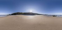 an empty beach with many footprints in the sand on a sunny day with the sun