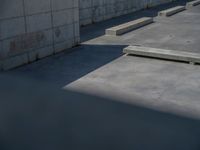 Aerial view of Zaragoza, Spain. The modern architecture and urban design create a cityscape with high-rise buildings and elevated plazas. The concrete walls and surfaces cast distinct, hard shadows against the open spaces. A perfect blend of historic charm and contemporary style.