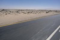 This is an image of an endless road in South Africa, with the vast African landscape stretching out into the distance. The road, made of asphalt and tar, cuts through the desert plains and mountain slopes. The clear sky with scattered clouds adds to the beauty of the scene. The motion blur effect captures the sense of speed and movement along the road. Lined with sparse vegetation and trees, this road represents the endless possibilities of exploration and adventure in Africa.
