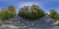 An aerial view of a rural landscape in Holland, Netherlands. The lush green fields of agriculture stretch as far as the eye can see. The straight road lined with parked cars adds a touch of symmetry to the scene.