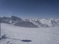 A breathtaking view of the snow-covered Alps in France. The open space and clear sky create a stunning landscape. The glacial mountains and ski pistes make it a popular tourist attraction in Europe.