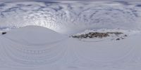 A picturesque winter landscape in the Alps of France. Snow-covered mountains and clear skies create a stunning view. A skier captures the scene on camera, adding to the tourism appeal of this elevated tourist attraction.