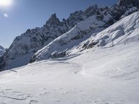A breathtaking winter landscape in the French Alps. Snow-covered mountains reflect the clear blue sky. Glacial peaks and ski slopes attract tourists to this stunning European destination.