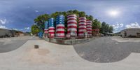 a panorama lens of the american flag painted in red, white and blue and blue