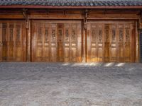 old wooden double doors set in an ancient building in china's beijing suburbs,