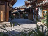 A picturesque view of an ancient town in Yunnan, China. Cobbled stone roads weave through historic architecture and residential courtyards. Classic Chinese buildings line the streets, bustling with city life and storefronts. A perfect blend of historic charm and modern urban design.