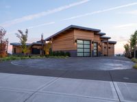 A beautiful house surrounded by lush vegetation and tall trees. The architecture is a perfect blend of wood and stone, creating a harmonious structure. The property is situated on a quiet road in a serene neighborhood.
