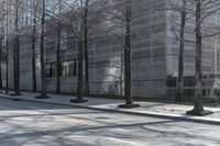 This stock photo showcases the modern architecture of Dallas city. The cityscape is captured during the day, with sunlight casting beautiful shadows. The photo features a concrete street in the business district, with an office building and storefronts along the road. In the background, a forest of trees provides a natural environment. The modern architecture is reflected in the facades of the buildings, with tiled walls and distinct lines. This urban scene also includes a public space and a state park, adding to the city's charm. The photo captures the harmonious integration of nature and urbanity in Dallas.