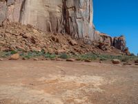 Off-road track in Monument Valley, Arizona. Gravel road under a clear sky leads through the open landscape. USA's nature at its finest with dirt and gravel streets in Utah.