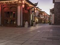 A charming old town in Asia, with classic Chinese architecture and lantern-lit buildings. Cobblestone streets and historic buildings create a festive atmosphere. The clear night sky adds to the beauty of this tourist attraction in Yunnan, China.