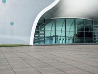 This image captures the modern architecture and urban design of a large building in Taiwan. The building stands out with its futuristic look and open window. The photo was taken during the day, showcasing the vibrant city life of Taiwan. It represents the city's dynamic atmosphere and fast-paced urban lifestyle. The surface of the building reflects the clear sky, creating a striking contrast. This photo is a great representation of the Republic of China's urban landscape and architectural beauty.