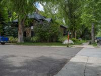 Aspen Trees Casting Shadows in Colorado Suburban Road