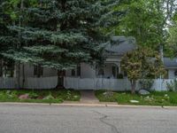A picturesque suburban area in Colorado, USA. Asphalt road lined with vibrant Aspen trees under a clear sky. Residential profile against fluffy clouds, showcasing the beauty of a sunny Colorado day.