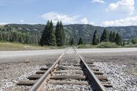 A scenic view of a mountain road in Colorado, lined with towering trees and surrounded by beautiful nature. Clouds float above the mountain range, creating a picturesque landscape. The road leads to Antonito and Chama, home to the historic Cumbres and Toltec Scenic Railroad.