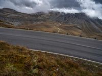 This is a stunning landscape photo taken in Austria, Europe. The image captures a winding asphalt road that cuts through the picturesque mountain terrain. The road is surrounded by lush grass and vegetation, creating a contrast against the dramatic and dynamic sky filled with clouds. In the distance, a serene lake adds to the beauty of the natural environment. This photo perfectly captures the rugged beauty and rural charm of the Austrian highlands. It showcases the stunning landscape and the breathtaking scenery that Europe has to offer.