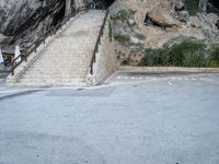 A scenic view of an asphalt road surrounded by beautiful nature and open spaces in Mallorca, Balearic Islands. The road leads to a spacious parking lot, highlighting the convenience of the location. Enjoy Europe's breathtaking landscape on a sunny day in Mallorca.
