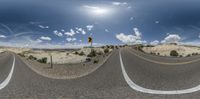 Aerial view of an asphalt road in rural Utah. The road cuts through the breathtaking landscape of Head of the Rocks, creating a straight route that leads to high elevated positions. Shadows cast dramatic and hard silhouettes on the road, enhancing the natural beauty.