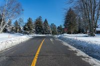 Asphalt Road in Suburban Ontario Covered in Snow
