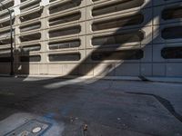 Sunlit Atlanta alley-way with modern urban architecture. Hard shadow cast on the asphalt road enhances the city life vibe. A glimpse of urban design in Georgia, USA.