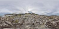 an aerial view of an island from a vehicle window, with large rocks and plants surrounding