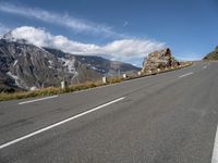 A breathtaking landscape in the highlands of Austria. The winding asphalt road cuts through the mountainous terrain, with clear skies and fluffy clouds overhead. An idyllic scene of nature in Europe.