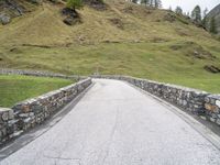 This is an image of a road that stretches straight through the mountains in Austria, Europe. The asphalt road is surrounded by a gloomy landscape with grey skies and clouds. In the foreground, there is a gate on a hill, adding to the natural scenery. The wet conditions indicate recent rainfall. This photo captures the tranquil beauty of the Austrian mountains and showcases the stunning nature of the European landscape.