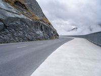 A picturesque landscape in Austria, with a winding road nestled between majestic mountains. The clear sky above contrasts with the sturdy asphalt and Armco barriers, blending nature and infrastructure seamlessly.