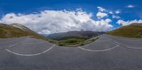 the view of a winding mountain pass is a beautiful scene in this fish - eye