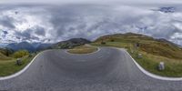 a view of the road from an angle on a cloudy day with clouds in the sky