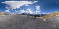 this is a 360 lens view of the mountain top mountains, and a sky that appears to be just above it