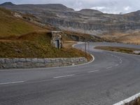 A dramatic landscape in Austria with a winding road and stone guardposts. The road surface curves through the terrain, offering breathtaking views of the mountains. This rural thoroughfare in Europe is a masterpiece of engineering.