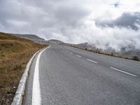 This scenic image showcases a rural road in Austria, winding through a picturesque landscape with towering mountains in the background. The asphalt road stretches ahead, surrounded by clouds and bathed in daylight, offering a serene natural setting for travel and exploration in Europe.
