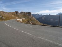 a person on a motorcycle driving on a paved road in the mountains with a mountain view