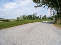 This image captures a clear sky over a road in Austria, showcasing the beautiful landscape of Europe. The road surface is made of smooth asphalt, leading through a field with no grass. A stop sign stands at the side of the road, adding a touch of urban design. The surrounding vegetation consists of trees and grass, adding a touch of nature to the city life. In the distance, mountains provide a stunning backdrop. This photo represents a typical day in an Austrian city, combining elements of urban and natural scenery.