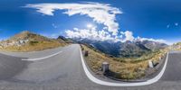 Austria's stunning landscape comes to life in this scenic view. A winding road cuts through snow-capped mountains, surrounded by lush green grass and vibrant yellow flowers. The clear sky adds to the picturesque scene.