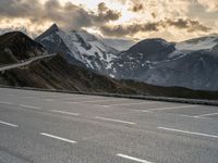 This scenic image captures the beauty of a mountain landscape in Austria. The view showcases snow-covered mountains in the background, with a car parked on an empty parking lot in the foreground. The asphalt road leads into the open space, providing an overview of the majestic nature. The clear sky enhances the breathtaking view, making it a perfect scene during the dawn. This photo represents the tranquility and awe-inspiring vistas that can be experienced in the European landscape of Austria.