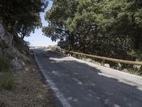 This image captures a daytime view of a high, elevated road in Mallorca, Spain. The asphalt surface is smooth and stretches far ahead, leading to the clear sky in the distance. The landscape showcases the natural beauty of Mallorca, with its stunning nature and Armco barriers lining the sides of the road. This road is a key feature of the European island, situated in the Balearic Islands of Spain. The photo represents the harmonious blend of the man-made road and the natural surroundings of Mallorca.