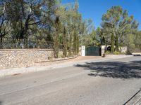 This is an image of a modern residential road in Mallorca, Spain. The architecture in the area is characterized by sleek lines and contemporary design. The road is made of asphalt and is surrounded by beautiful nature. The clear sky above enhances the beauty of the landscape. Mallorca is one of the Balearic Islands in Spain, located in Europe. This photo captures the essence of modern architecture in Mallorca, showcasing the harmonious blend between nature and human-made structures.