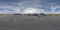A straight road leading to the Barcelona cityscape at dawn. The surface is illuminated by street lights creating a dramatic urban scene. The coastline and harbor in the foreground add to the city's vibrant atmosphere.