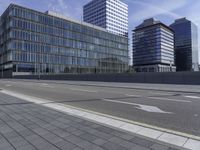 A modern architecture skyscraper in Barcelona's Zona Franca district. The glass-walled building stands tall in the cityscape, reflecting the clear sky. The road surface and bridge add to the urban design of this bustling city.