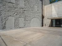 A modern architectural marvel in Barcelona, Spain. The concrete walls of this urban museum blend seamlessly with the city's vibrant atmosphere. Clear skies highlight the sleek surface and urban design of this European city.