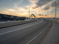A modern urban bridge in Barcelona, Spain. The coastal skyline at dawn, with clouds reflecting on the ocean. The bridge connects the city to the coastline, blending modern architecture with the natural beauty of the European coast.