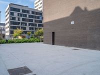A sunny day in Barcelona, Spain. The modern architecture of residential homes creates a unique urban design. Shadows from the clouds cast hard shadows on the concrete surfaces. The city's open spaces provide a glimpse into European city life.