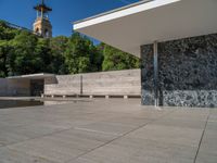A modern architectural marvel in Barcelona, Spain. The museum's sleek design stands out against the clear blue sky. Pavers create an open and inviting space for urban exploration. A perfect day in Europe.