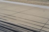 An elevated view of a beige concrete street in Dallas. The urban landscape features high-rise buildings and parallel roads. The airport and airfield add to the composite material of the city.