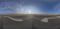 The Tempelhof Airport in Berlin, Germany. An open space with a clear sky, showcasing the architecture and infrastructure of the airport. The runway features an airplane painted onto the ground, adding a touch of urban design to the landscape.